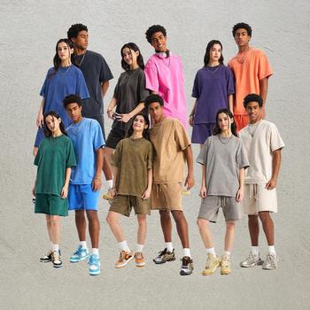 사용자 정의 로고 하이 퀄리티 사용자 정의 대형 태양 퇴색 산 세척 100% 면 남성 티셔츠 짧은 소매 드롭 숄더 빈 티셔츠
